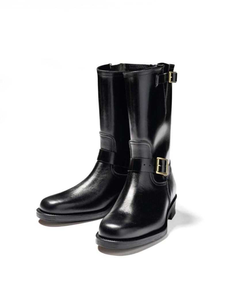 1950年にブコが製作したホースハイドのエンジニアブーツを再現。細かく丁寧なステッチワークからシャープなシルエットまで、当時の仕様を踏襲している。19万8000円