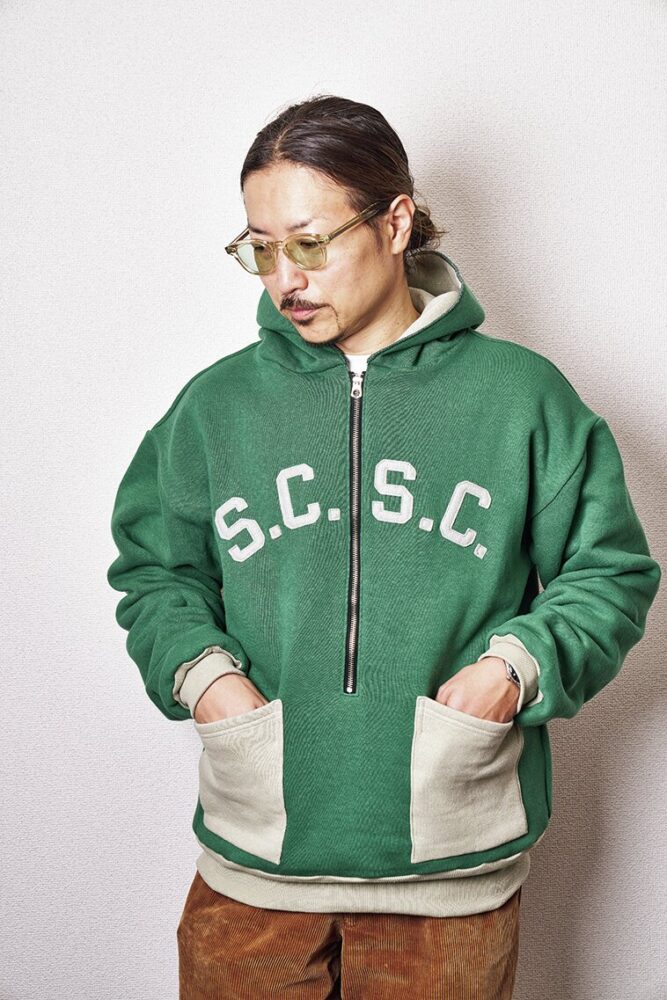 ジーンズやデニムジャケットのような工業製品と違い、個人やチーム単位でオーダーしていたスウェットは生産数が段違いに少なく、残存数も極僅か。コットン素材は当然ですが、2トーン、フェルトのレタリング、後付けフードなど「役」が付けば付くほど珍重されます。