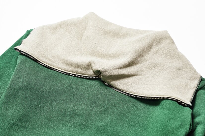 ヘブロン高校のスクールカラーであるグリーン×グレーの2トーンでダブルフェイス仕様。裏面はグレー生地だ。