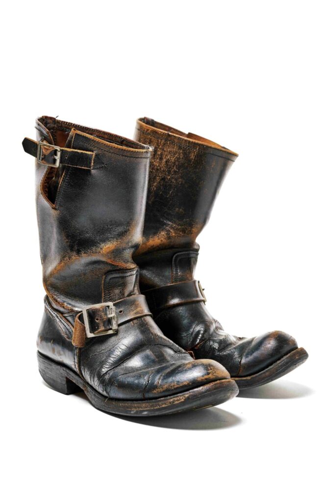 ダイナミックに茶芯の浮き出たこちらのブーツは、ザ・リアルマッコイズのスタッフが履き込んだBUCO ENGINEER BOOTS / BUTTOCK。爪先の黒は削げ落ち、シャフトのクタり部分は擦れて圧倒的なブラウンが出現している。着用年数は不明だが、おそらく10年以上は履いてきたに違いない。茶芯とは、履き込んだ/着込んだ者のみに許された、レザーの桃源郷なのだ。