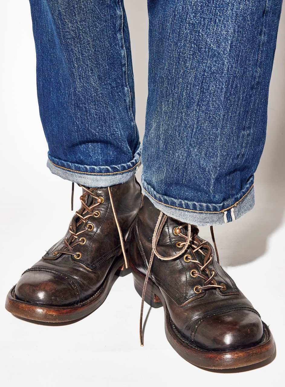 デザイナーの徳永さんいわく「デザインすることを否定したようなワークブーツ」と語るようにワークブーツ然とした堅牢な作りと趣のあるエイジングがブーツの魅力を倍増させる。