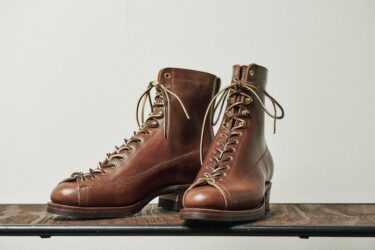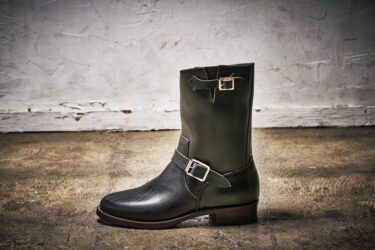 「イタリアンホースバットを独自のレシピで仕上げ、ブラウンの革をブラックで染め直した茶芯レザーを使用しています。とにかく頑丈な作りで、アメリカの名だたるワークブーツメーカーの伝統でもあるステッチダウン製法を取り入れた和製ステッチダウンのブーツとして数少ないモデルです」
