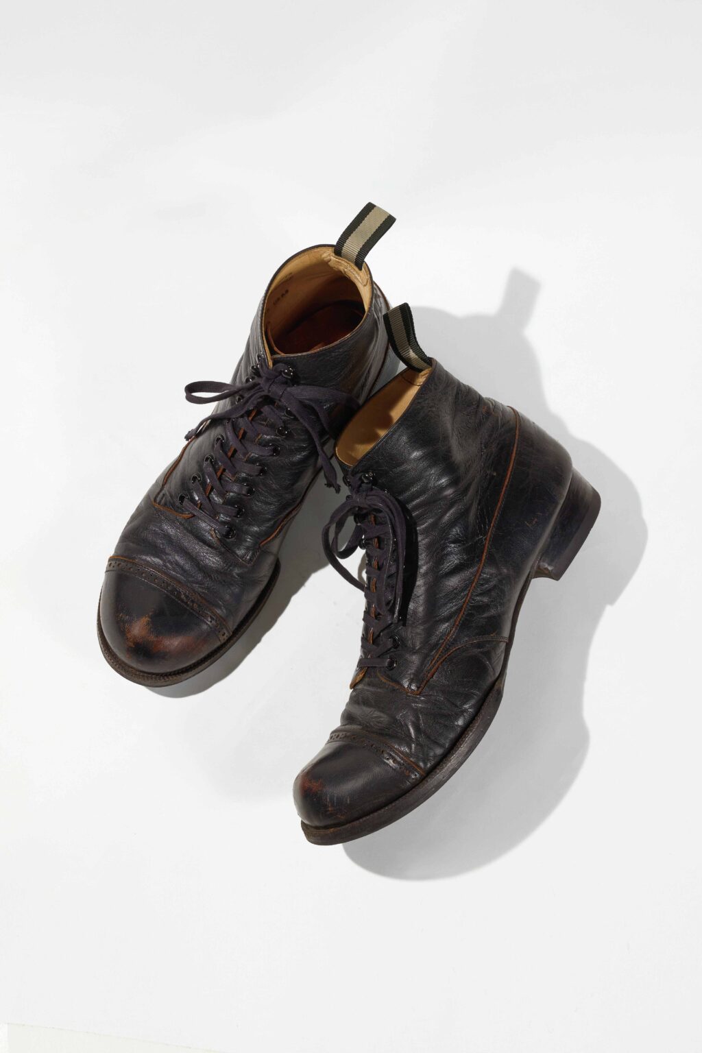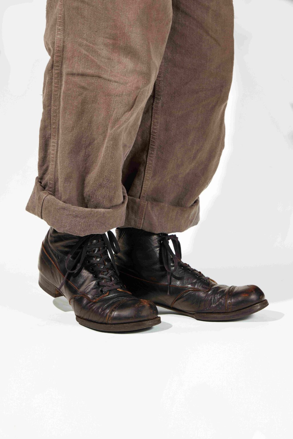 「ヴォードビルが一世を風靡した1910年頃は、自動車がまだ普及しておらず、道が塗装されていませんでした。そんな状況で街を歩くと靴の中に土やホコリが入ってきてしまうことから、足元はブーツが一般的だったのです。つま先が盛り上がったキャップや上下で切り替えた腰革などがその時代のブーツのデザイン的な特徴で、レザーは茶芯が一般的でした」と当時のデザインを踏襲して製作したのだという。