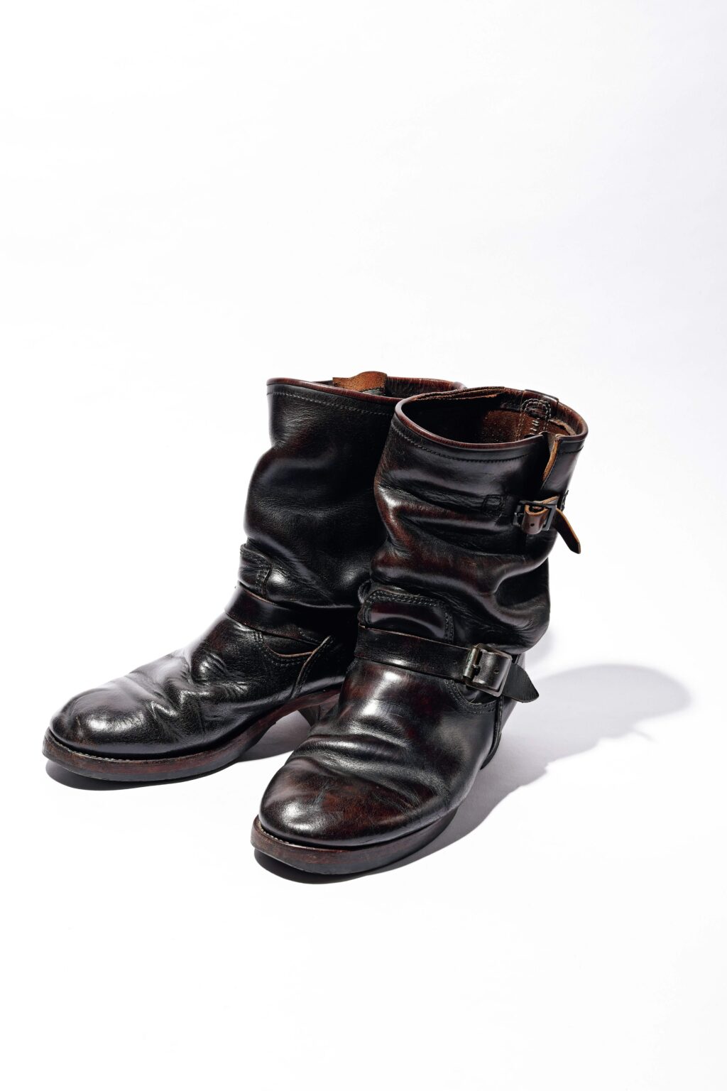 アッパーとシャフトに波打つようなシワ。そして表面のブラックが剥がれ、下地のブラウンが全体的に現れたヴィンテージと見紛うほどの風合いは、福富さんが20年着用を重ねることで刻まれたエイジングの“証”だ。
