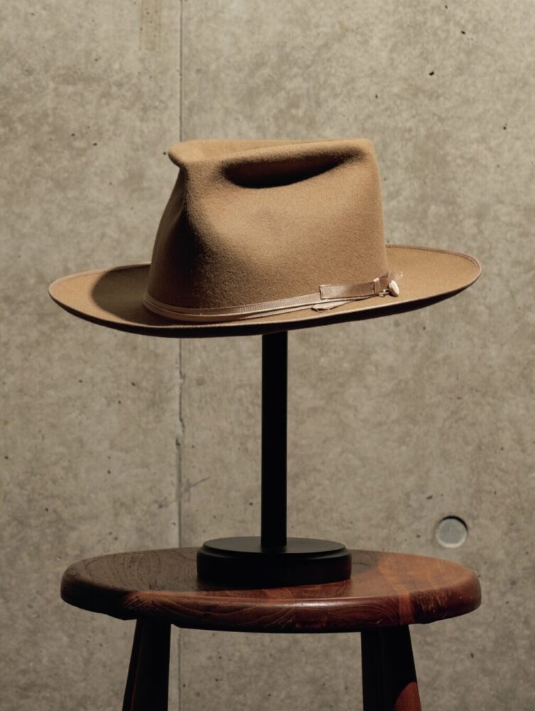 1910年代後半から1920年代にかけて、アメリカやイギリスでは「飛行士のための衣料」というカテゴリーで、専門のカタログが販売されていた。これには飛行用のジャケットやコート、ゴーグルなどが紹介され、飛行士や航空愛好家たちが自らの装備を選ぶ手助けとなっていた。また当時の飛行士たちの写真資料を探っていると、寒さから回避すべく一様に革製コートの下にはセーターやベスト、ヘッドウェアにはキャスケットやハット、首周りにはスカーフといったクラシカルで紳士的な出立であることが多い。そこで「THE FAT HATTER」が展開するブランド“Mr.FATMAN”とのコラボにより、当時の飛行士たちがめかし込んで被ったハットを、ラビットファーで製作。
