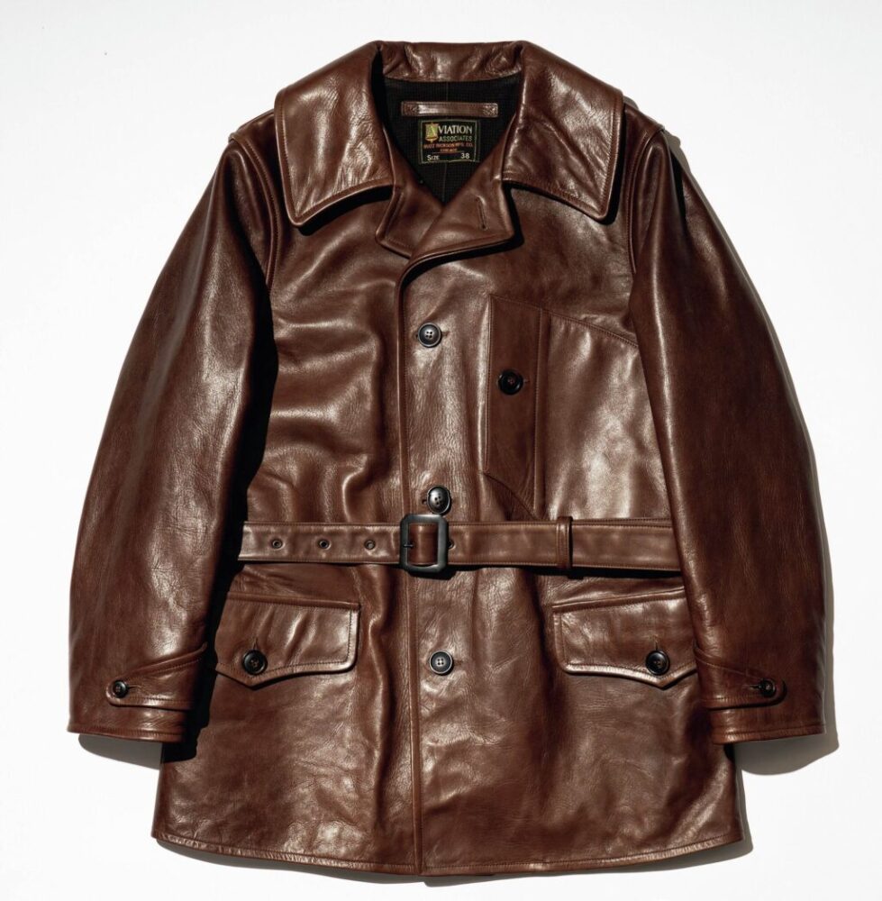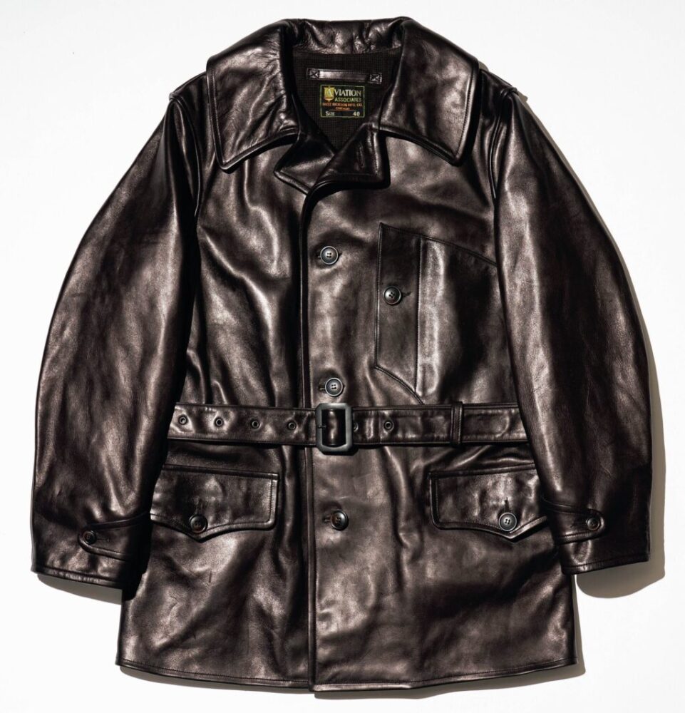 飛行士たちが1910年代から1920年代にかけて着用していた革製のコートは、当時の飛行環境における実用性を反映している。ライト兄弟が1903年に初めて有人飛行を成功させ、飛行機が商業や軍事において重要な役割を果たし始めた黎明期、飛行士たちは高空での寒さや風圧にさらされることが多く、そのため防寒対策が必須であった。そこで長時間の飛行でも快適に過ごせる装備として、動き易く腰まで覆う重厚な革のコートが多くの飛行士たちから支持を得ていた。特徴的なDポケットやブラス素材のバックル、脇下のベンチレーションホール、そして袖先からの冷気侵入を防ぐインナーリブの仕様など、非常にクラシカルなディテールに注目したい。
