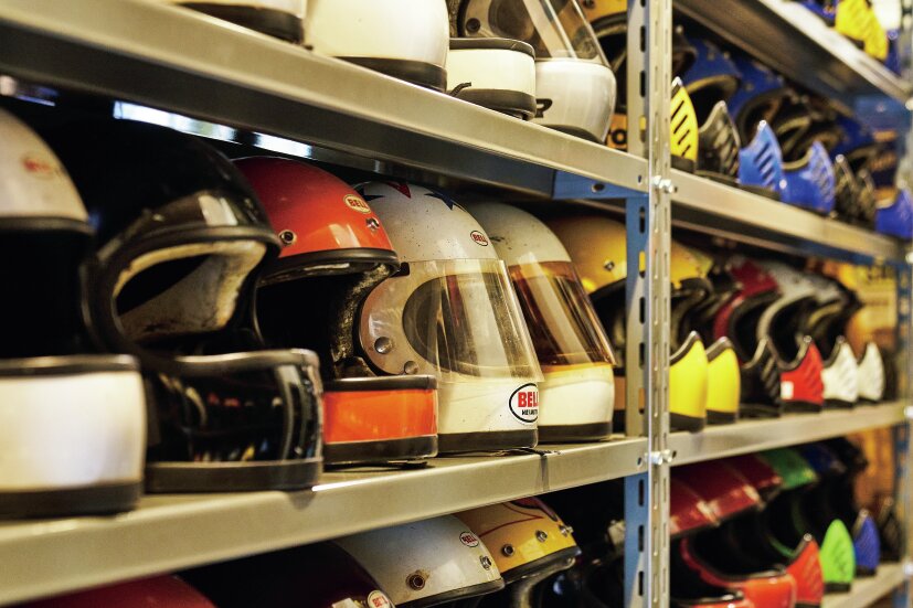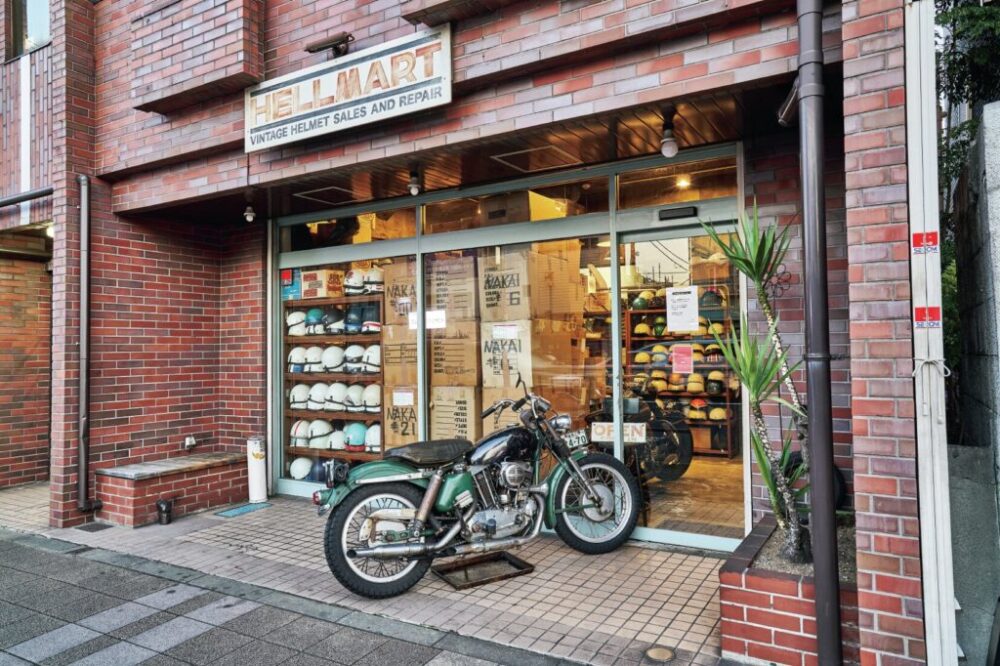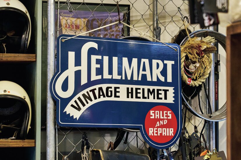 「ヘル」と名が着くように、そこで1950年代~’80年代を中心にアメリカでつくられたベルやブコやショーエイのジェット型やフルフェイスを輸入。ヤレすぎた緩衝材はきれいにリペアして販売している。現行モノにない、時を経て出た“味”を、今のバイク好きやコレクターに引き継いでいる。