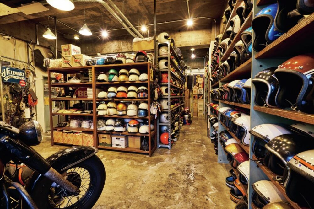 古着に混ぜヘルメットをオークションサイトで売ると、日本のバイク好きがすぐさま購入してくれた。ちょうどヴィンテージ古着が高騰、宝探しのおもしろみが減った感もあった。「ならば……」と参入少ないブルーオーシャンだったヘルメットに特化し、ネットでの販売からスタートしたわけだ。