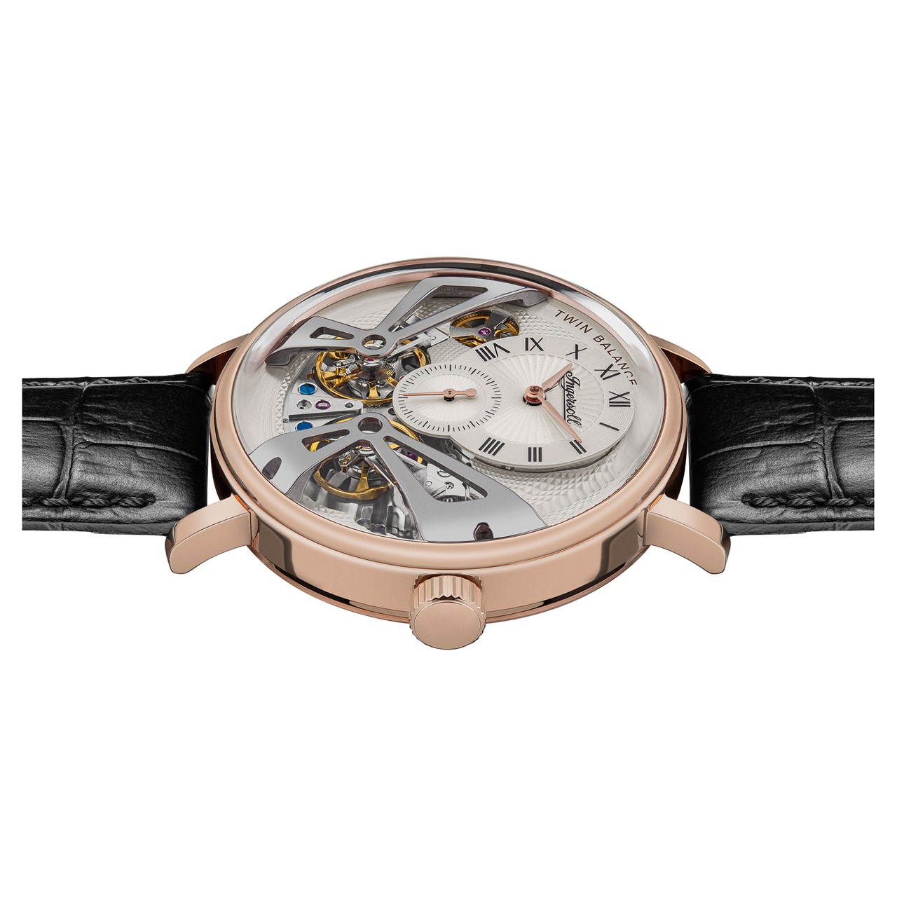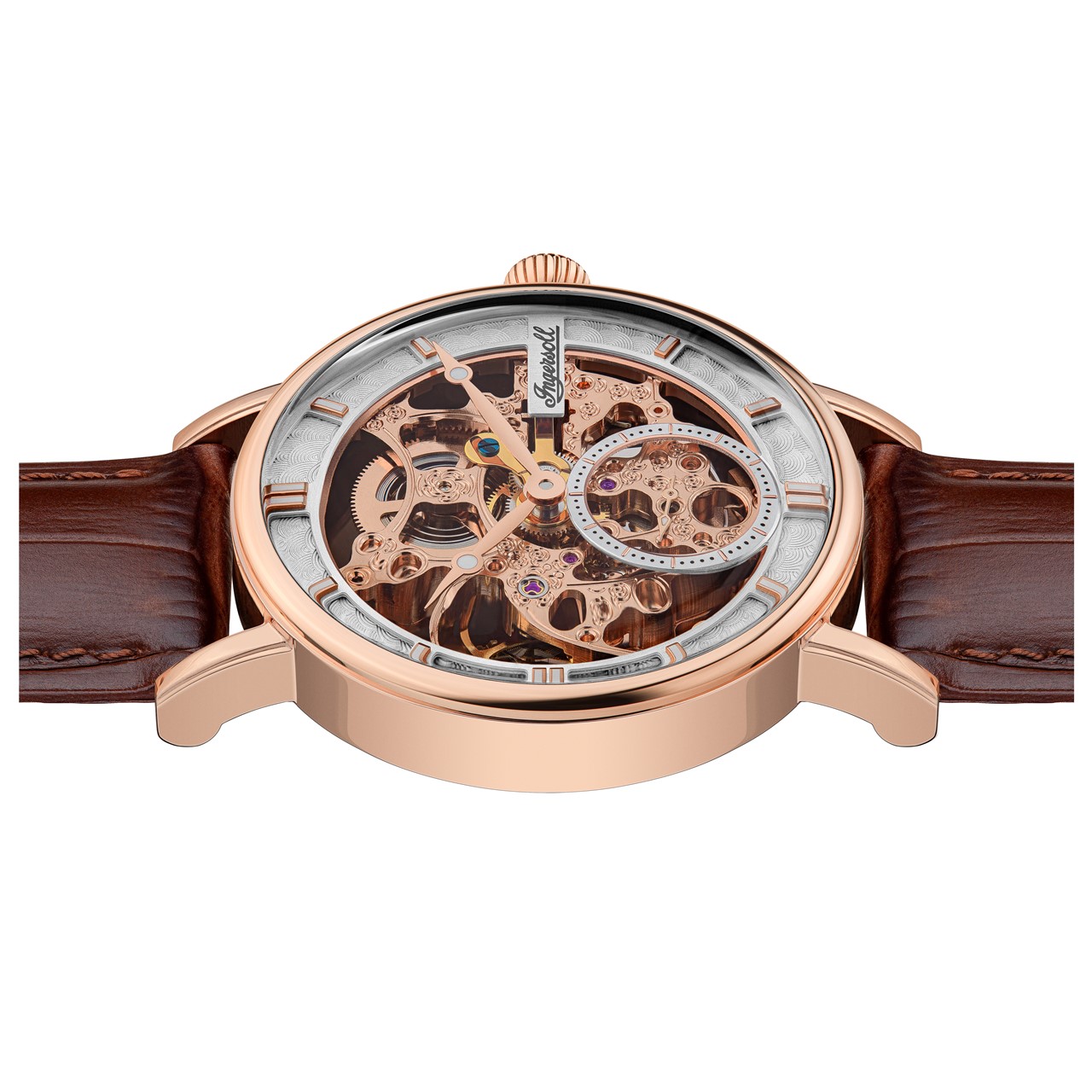 Herald Automaticは、スケルトン化されたダイヤルとエキシビションケースバックを備え、内部の美しさを際立たせたモデル。インガソールの時計製造技術とディテールへのこだわりを体現する逸品で、洗練されたデザインと技術が融合した特別な存在感を放つ。