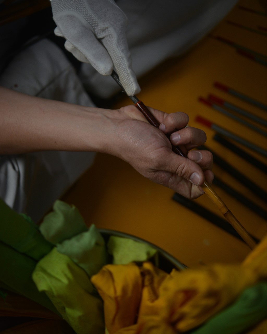職人が山に出向き、厳選した国産天然竹を使用。漆塗りによる強度・防水性と、美しい光沢を兼ね備える。貼り合わせ削り穂先など、すべて熟練の職人の手仕事で生産される。