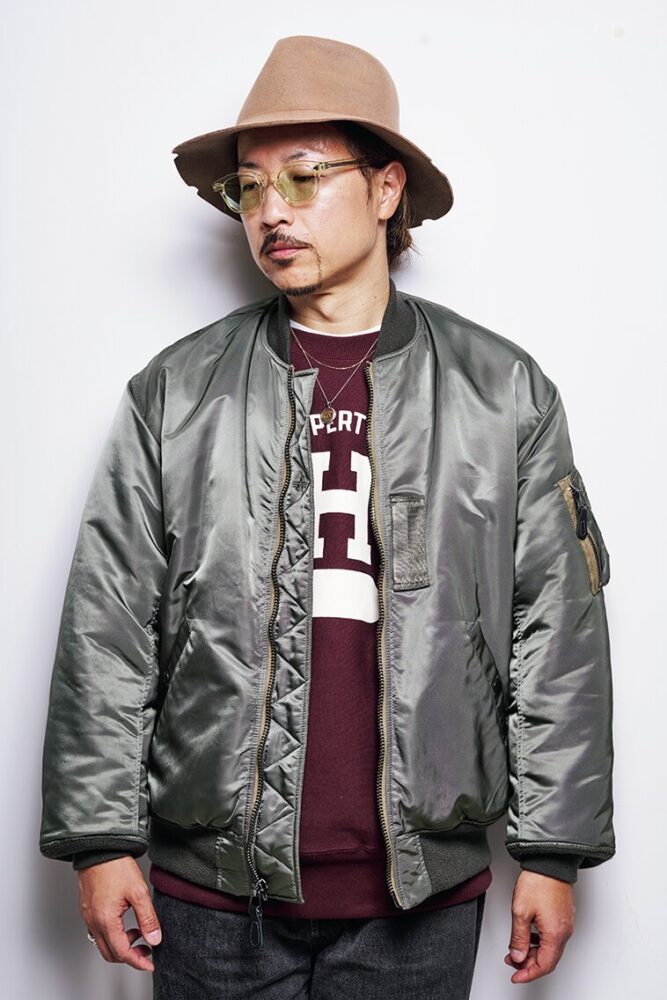 数あるフライトジャケットの中でも個人的に大好きなのが、大定番のMA‒1。その昔に大流行したことで少し遠のいていた時期もありますが、10年前くらいから再び着る機会が増え、若者の間で流行したことでまた疎遠に。そして、その流行が落ち着いたことでまた着たくなっていた矢先、展示会で見つけ、この冬に手元に来たのがこの1着です。