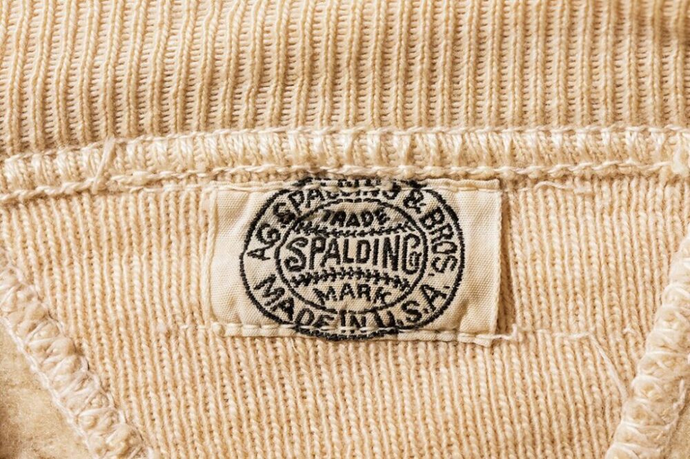 1926年のカタログにはすでに掲載されているのが確認されている「スポルディング」の両Vスウェットシャツ。コットンの表地にウールの裏地という仕様で、袖リブの切り替えが特徴的な1着で、このモデルは1937〜38年ごろまで存在したようだ。