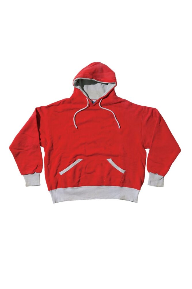 シアーズ・ローバック社の展開する「ピルグリム」のタグが付くスウェットパーカ。この特徴的なデザインと配色から、スポーツウエアに豊富なデザインやカラーリングを取り入れた名ブランド「アコム」が手掛けたものだと推測される
