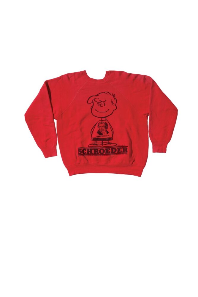 「メイヨー スプルース」が1960年代に展開していた、有名なピーナッツシリーズのスウェットシャツ。中でもシュローダーがベートーベン柄のプリントスウェットシャツを着たデザインは希少性が高い。