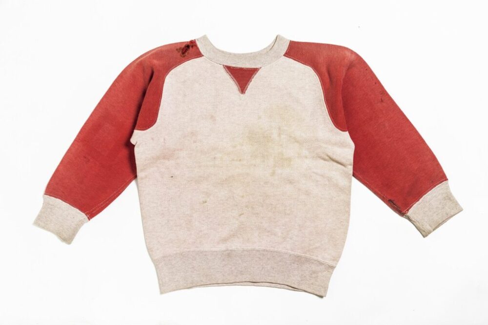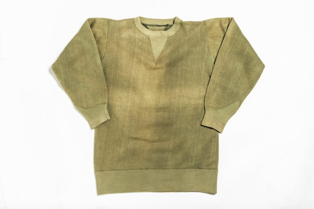 1940年代頃の両Vフリーダムスリーブのスウェット。両Vやスリーブとリブの配色、経年変化による褪色など、シンプルなデザインの中にもヴィンテージらしさが溢れた1枚。