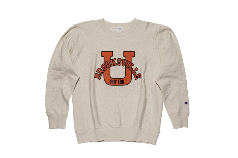 裏毛を使ったクールネックスウェットで、身幅にゆとりをもたせたリラックスフィット仕様。アメリカの「BROOKSVILL」アーチ状に配置して「U」の文字を組み合わせた“カレッジ風”デザインにした(1万780円 チャンピオン ブランドハウス シブヤ トウキョウ TEL03-5962-7600)