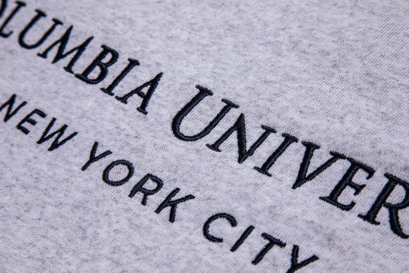 フロントのコロンビア大学のロゴエンブレムは刺繍で落とし込んだ手に込んだ仕上がり。