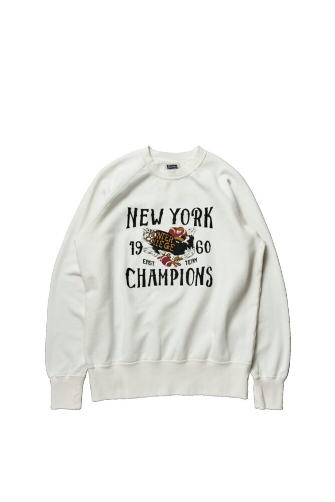 1960~’70年代頃を感じさせる裏毛のラグランスウェットシリーズの新作モデル。当時開催されていたアメリカンフットボールニューヨーク東地区大会の優勝チームに送られた記念のスウェットをイメージしてデザインされた。1万4080円(フェローズ TEL03-5725-9577)