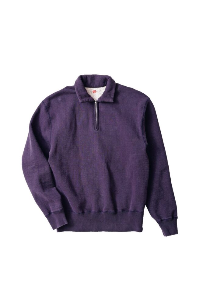USAFA(米空軍士官学校)のアイテムでも見られるデザイン性が高い印象のハーフジップ仕様。オートロック式のアルミジッパー。ネイビーの色が褪色していった通称“ナスコン”を先染めで再現している。3万3000円(トロフィージェネラルストア TEL03-6805-1348)
