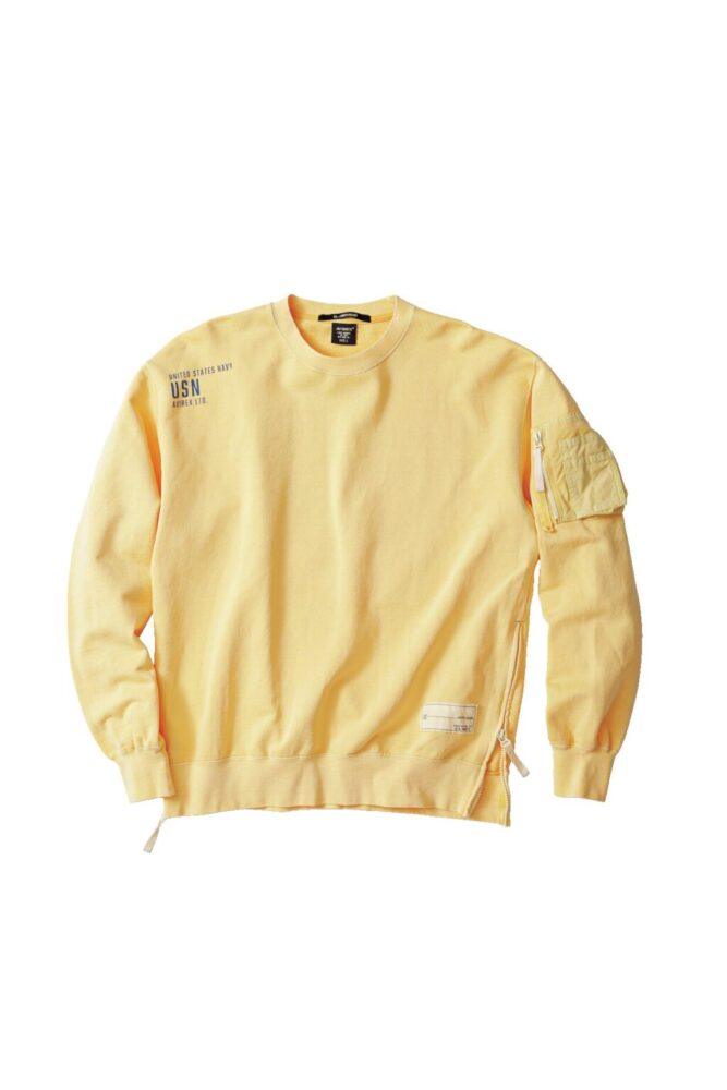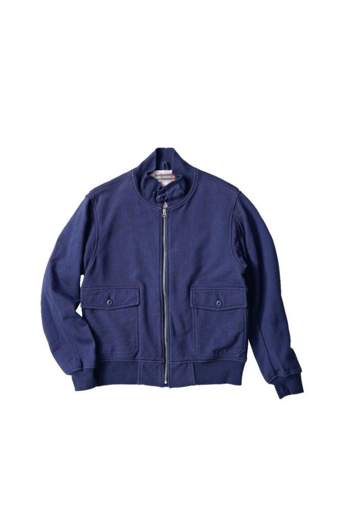 1950年代から1970年代に掛けてアメリカ海軍が支給していたフライトジャケット「G-8」、通称“WEP”をスウェット生地で再構築した逸品。着丈の短さを現代的な長さへアレンジし、羽織りやすいデザインとなった。4万2900円(ハンドイントゥリーショールーム TEL03-3796-0996)