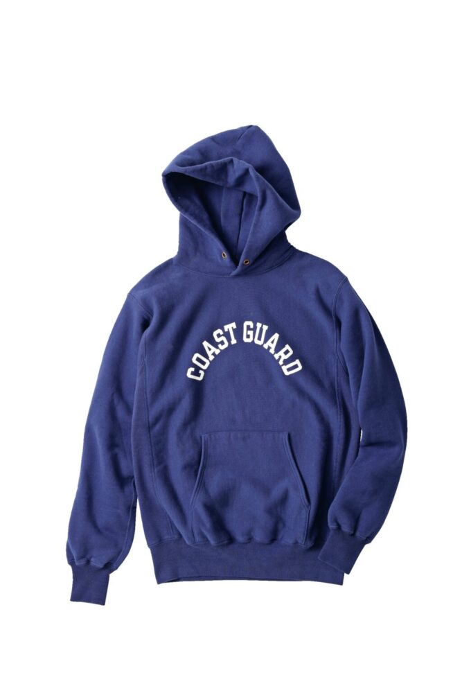 ヴィンテージ市場において価格高騰中のアメリカ沿岸警備隊のトレーニング用スウェットフーディを忠実に再現。身頃生地を横使いし、脇はリブ素材と切り替えており、丈の縮みを防止すると共に縦横の伸縮性を高めた。1万8480円(東洋エンタープライズ TEL03-3632-2321)