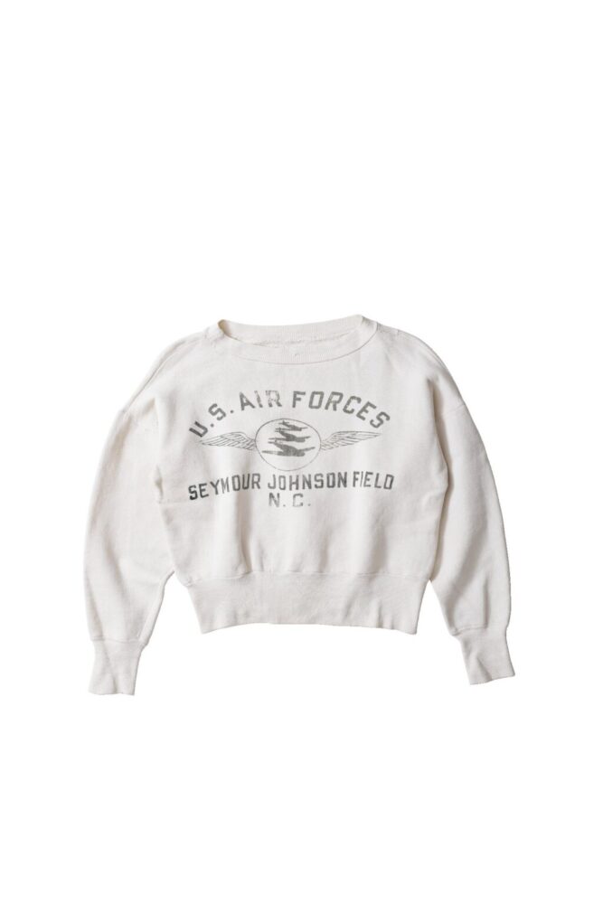 米陸軍航空隊の染み込みプリント。そのデザインからUSAFへと独立する1947年以前のものと推測。アメリカ・ノースカロライナ州にある「シーモア・ジョンソン空軍基地」の名称をあしらった豪華な4段プリントだ。11万円(ハスキー原宿 TEL03-6712-6922)