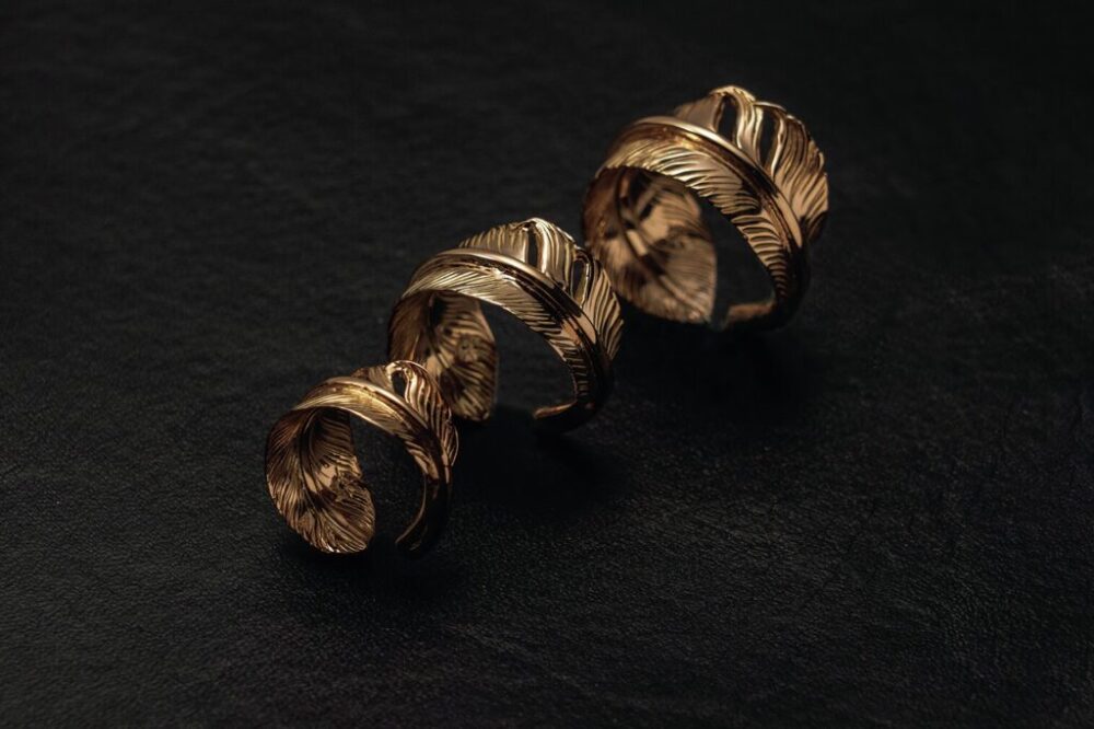 サイズに応じた細かな打ち込みの美しさが露呈されるゴールドリング。豊富な経験と卓越した技術を持つクラフトマンだけが成せる技だ。