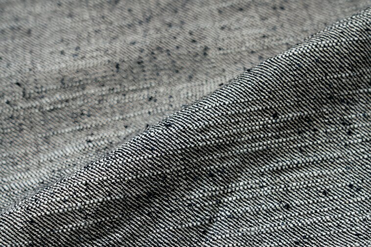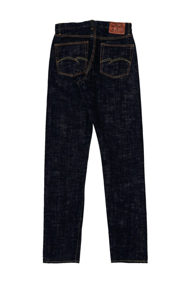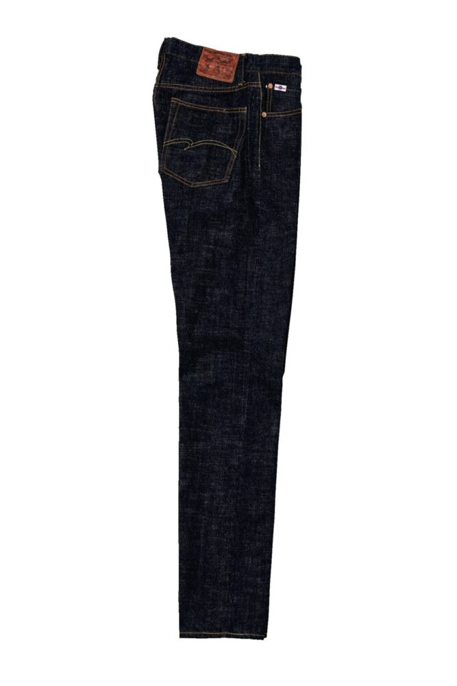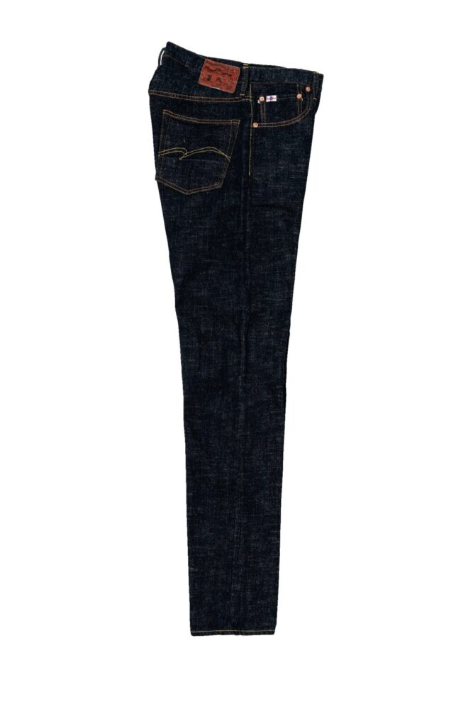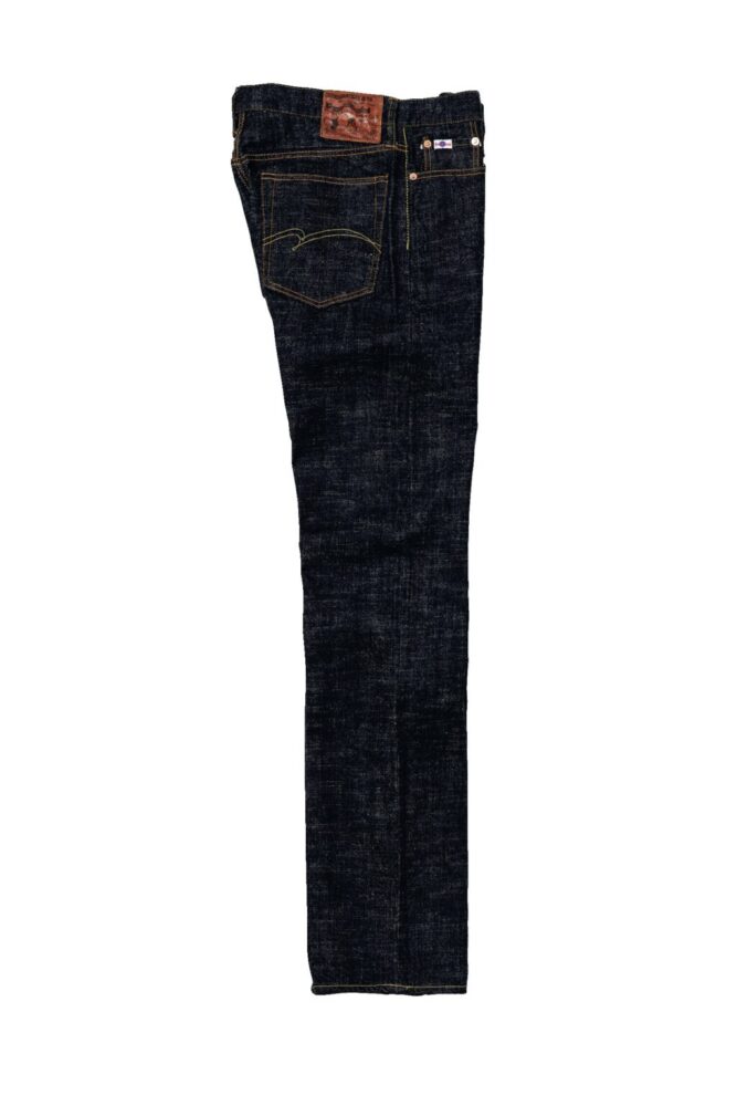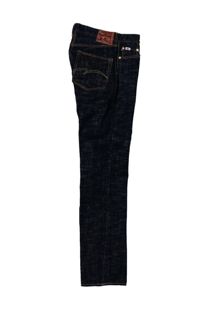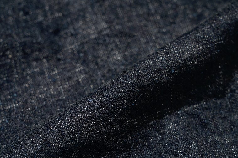 半世紀以上前に作られた「豊田自動織機GL3」は、1時間にわずか5メートルしか織ることができない非効率な織機。しかし織られたデニム生地には武骨さと荒々しさが生まれる。その生地感を最大限に活かすため、糸の凸凹形状や糸番手、ロープ染色の色合い、経糸緯糸の打ち込み本数にこだわり、独特のムラ感や粗野感のある風合いのデニム生地へと仕上げた。オリジナルで紡績した中白糸を丹念にロープ染色させた最濃度のインディゴカラーは必見!