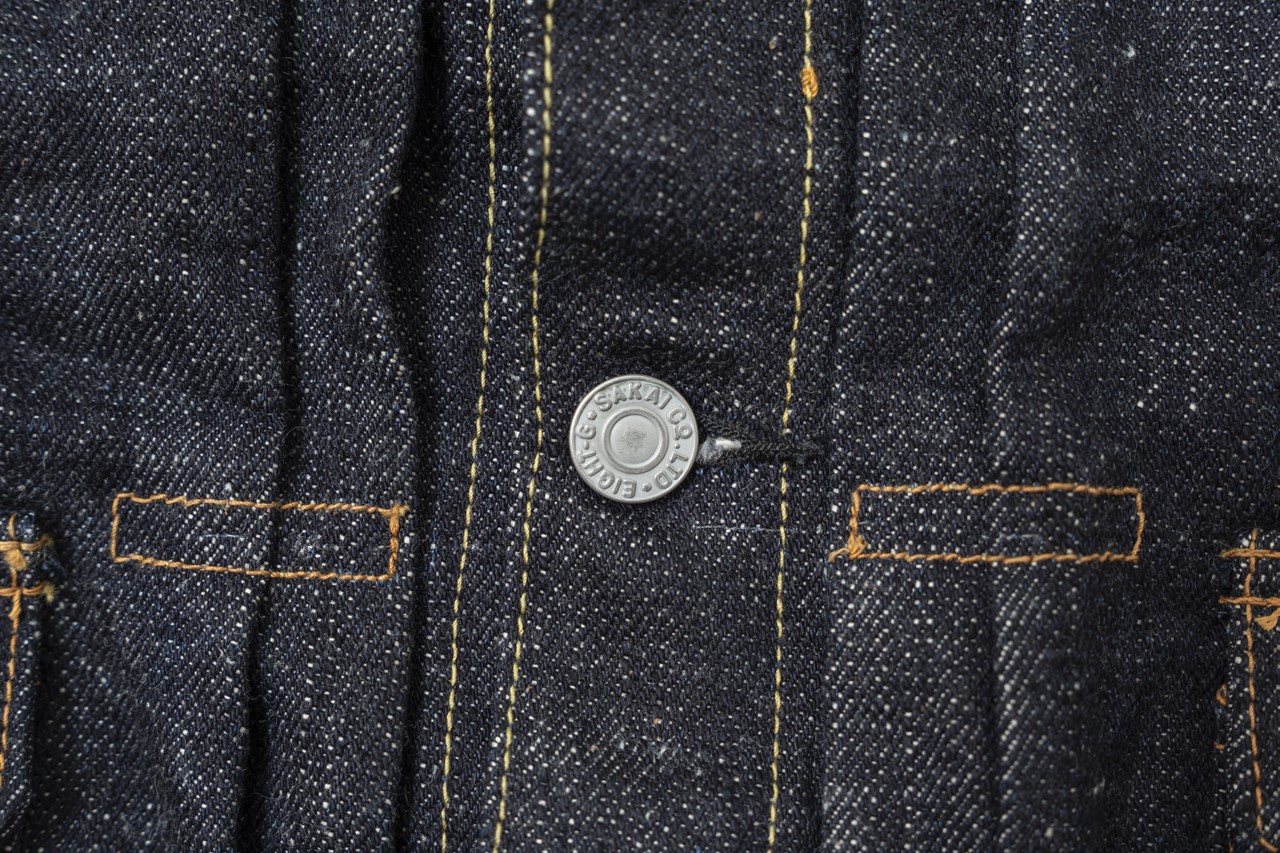 フロント左右にふたつのフラップポケットを配したいわゆる2ndタイプのデニムジャケット。17オンスのセルビッジデニムを採用し、極濃のインディゴで染め上げたエイトジー渾身のオリジナルデニムはメリハリのある美しいエイジングが大きな魅力。3万1900円
