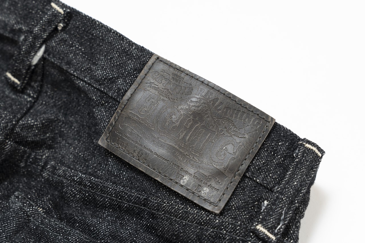 生地をはじめ、金属パーツやスレーキ、革パッチなど細かなパーツや縫製に至るまで、ブラックを極めた漆黒の男デニム。生地はエイトジーオリジナルの17オンスのセルビッジデニムをベースに「男デニム第二弾」をベースにブラックバージョンを100本限定で生産。ボタンやリベットはひとつずつブラックで塗装仕上げが施されている。
