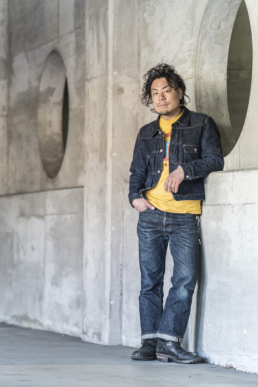王道のデニムオンデニム。ジャストサイズで穿き込んだLot.702の美しいエイジングをコーディネイトの主役にデニムジャケットをオン。インディゴカラーと相性の良いイエローのTシャツを挿し色にシンプルにスタイリング。