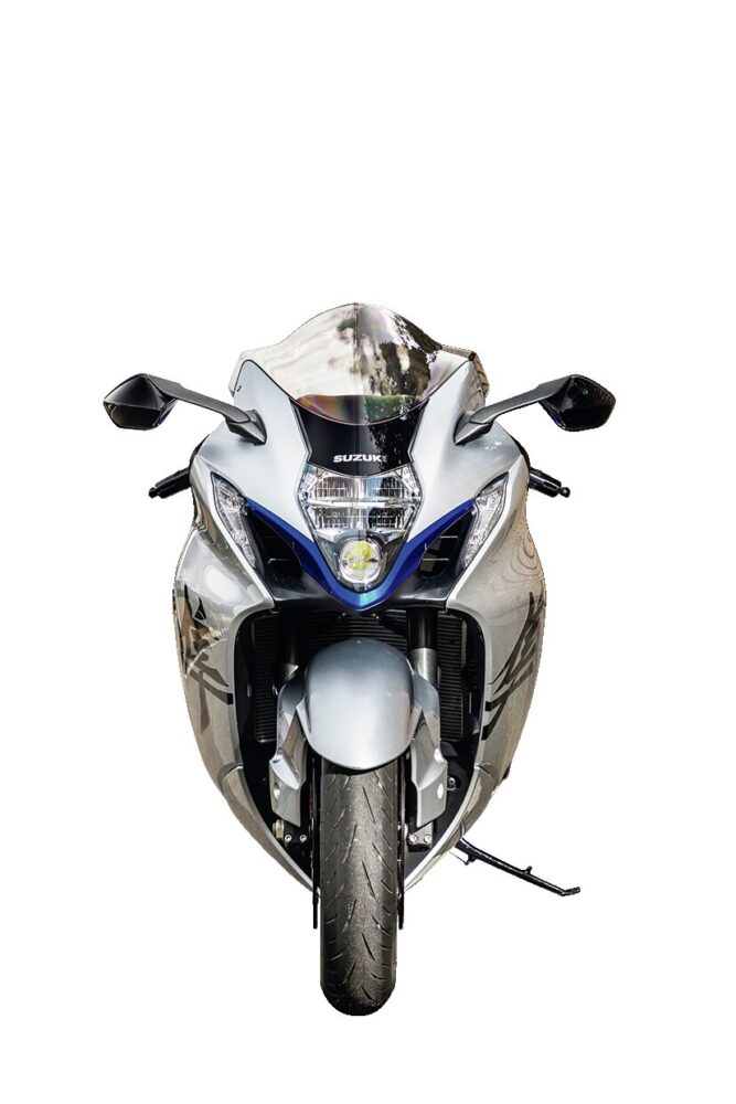 ’99年に市販車両からミラーを外しただけの状態で、最高時速312㎞/hを記録し、世間を驚かせた隼。現行の3代目モデルは’21年にデビュー。エンジンも排気量こそ2代目と同じ1339㏄ながら、クランクやコンロッド、ピストンなどエンジン内部のパーツはその多くが見直しを受け、大きく進化している。撮影車両はミスティックシルバーメタリック/パールビガーブルーの組み合わせ。メーカー希望小売価格は223万3000円
