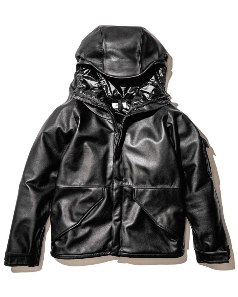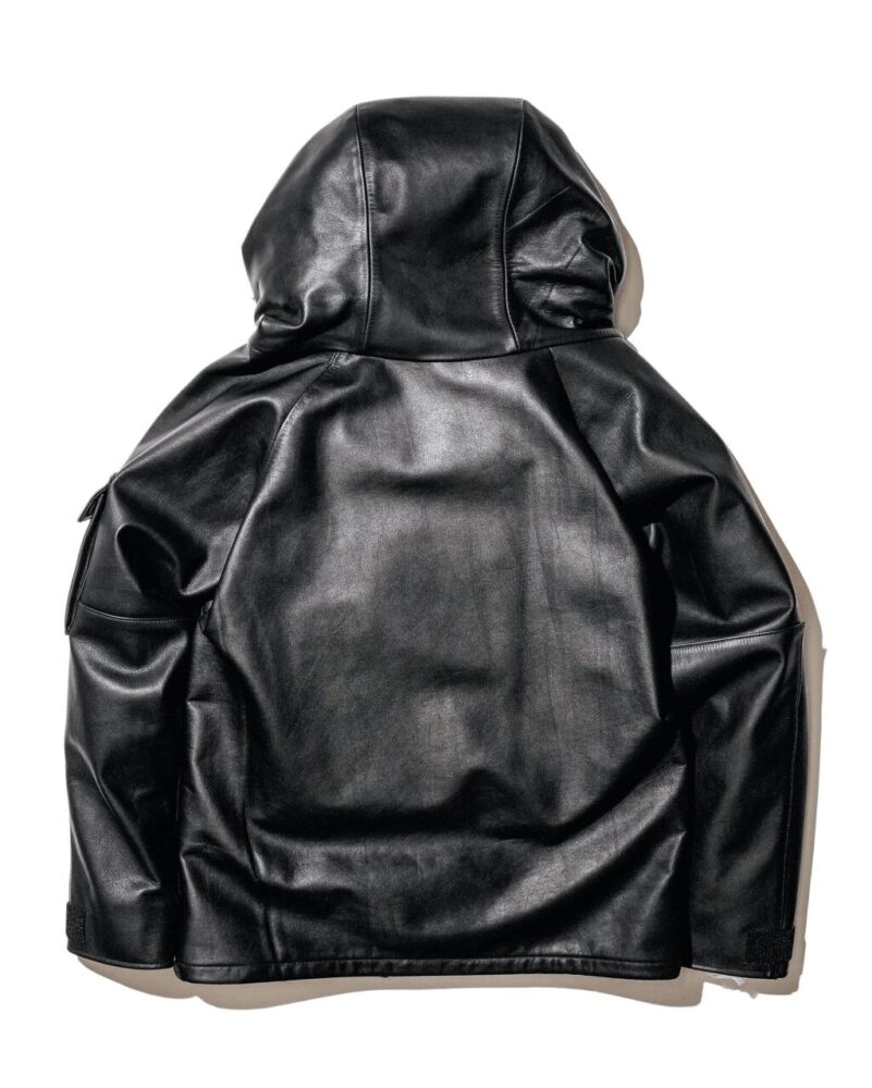 アメリカ陸軍の名作、ECWCSをレザーで落とし込んだ意欲作。素材に使っているのは、撥水・防水加工を施した牛革。厚みは1.1〜1.2㎜厚で、質感も十分。ウォータープルーフレザのため、バイカーの方にも超おすすめ。ポケットはオリジナル同様ベルクロ仕様なので使い勝手も申し分なし。フードも付属しているので、ストリートでも十分に使える。実はこの牛革、米軍のミルスペックに準拠した撥水加工を施しているため、土砂降りの日でも安心して着て出かけられる。雨の日は革ジャンは着ない……なんて、もはや昔の話だぜ。26万9940円