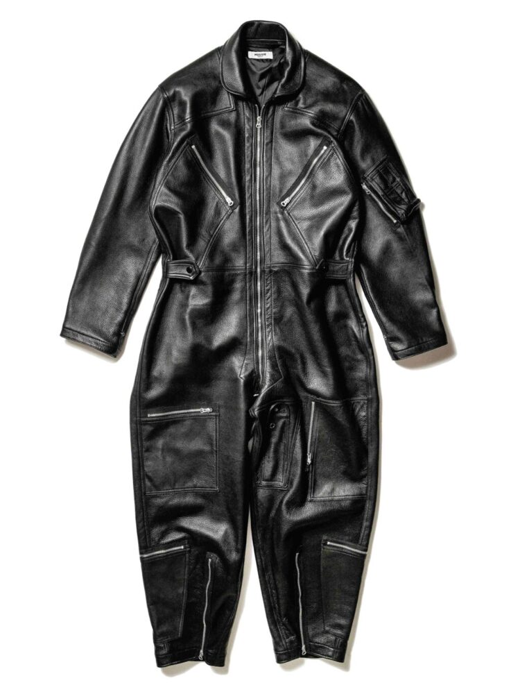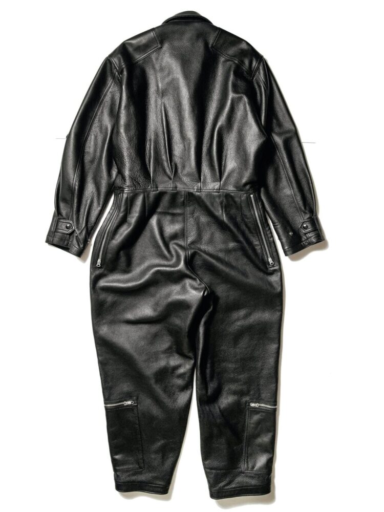 1960年代に見られたアメリカ空軍のフライトスーツをデザインモチーフに、レザーで落とし込んだユニークなモデル。オリジナルは難燃性素材のノーメックスだが、こちらは牛革。ウォッシャブルレザーで、洗えるのが嬉しいポイント。バイカーの方にもピッタリなんじゃないかな? ポケットの配置やディテールはオリジナルを踏襲しているので機能性も十分。ツナギとして着るだけではなく、いろんな着こなしに挑戦してみたい1着に仕上がっている。上半身をあえて羽織らず、腕を腰に巻き、革パンとして着るのもクールかも。37万9940円