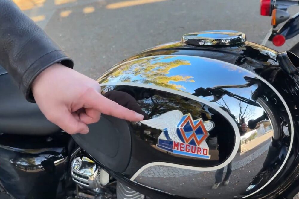 「取りまわしやすそうなボディサイズもいいですね。僕の乗っている旧車はトラブルでよく止まってしまうんですが、このメグロならそんな心配もないですよね(笑)」