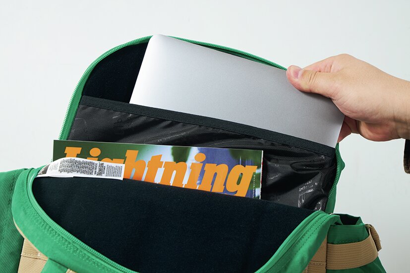 PCや雑誌など薄型の荷物を入れるためのポケットも付いています。大事な機器も大切に持ち運べます。