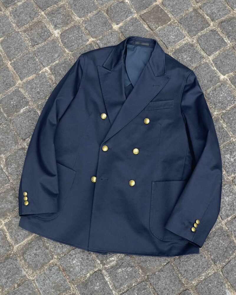 僕がアメリカを最も感じるアイテムはブレザー。アメリカ東海岸の名門私立大学に通う学生たちのスタイル「アイビースタイル」を象徴するアイテムで、制服として学生時代に着用した方も多いのではないでしょうか。一般的にはシングルブレストの段返り3つボタンが最もスタンダードなブレザーですが、この6ボタンのダブルブレストがアメカジにも取り入れやすいのではないかと。