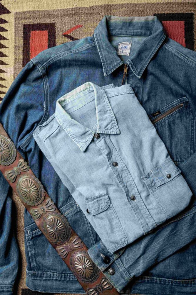 シルバースミスになった今でもヴィンテージのワークウエアをユニフォーム的な感覚で、着用する林田さん。ナバホ族の伝統的な手法を駆使してジュエリーを作り上げる林田さんは、銀にタガネと呼ばれる鉄製の道具で細かな柄を打ち込んでいき、薬剤を使って硫化させ、それを美しく磨くというのが基本的な工程。汚れやすく、肌に付くと危ない劇薬や溶けた銀を扱うため、タフなワークウエアはファッションの前に道具でもある。特に美しくエイジングしていくデニムとシャンブレーは、自身の仕事にもライフスタイルにも欠かせない存在だと語る。