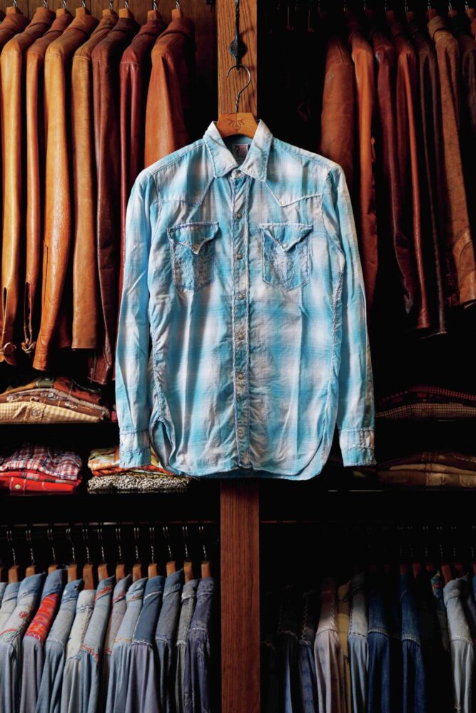 そんな彼が選ぶ、アメリカを象徴するアイテムはウエスタンシャツ。現在400着という膨大なコレクションから1枚選んでいただいた。紹介してもらったのは10年以上前にアメリカのヴィンテージバイヤー、ラリー・マッコイン氏からデッドストックの状態で購入したという’50年代の「リーバイス」のウエスタンシャツ。そのシャツは、彼が歩んできたファッションの道程の証であり、アメリカンファッションへの深い理解と愛を体現している。