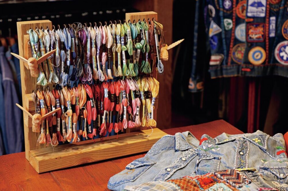自身が所有しているカジュアルシャツには、すべてステッチを施しているという水野谷さん。ステッチを行う時、シャツの生地に糸を合わせる際にひと目で選ぶことができるよう、まとめられている。