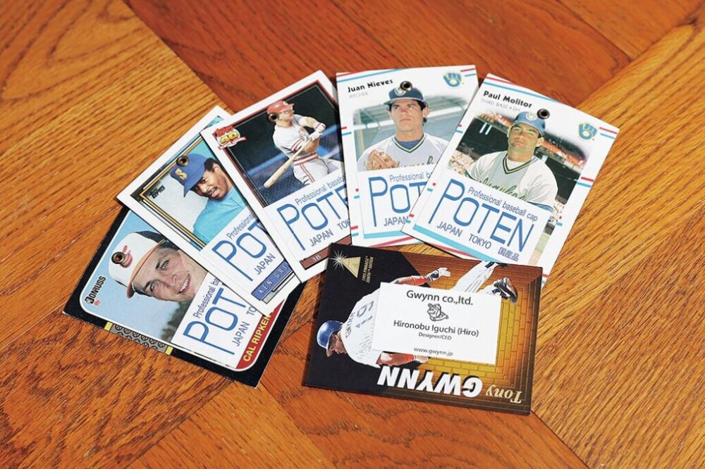 MLBの旧いトレーディングカードを商品の下げ札として使用したり、井口さんの名刺も同様にこのカードが再利用されている。