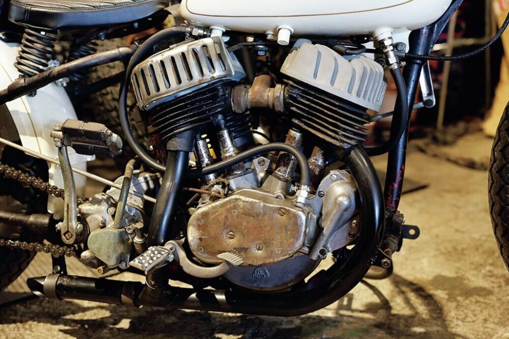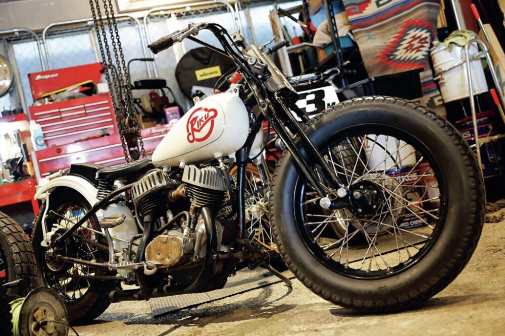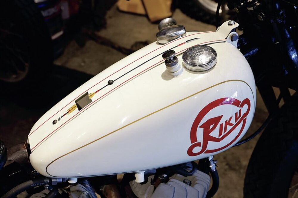 「ベースは当時のハーレーRLを元ネタに作っているんですけど、やはり本家であるアメリカが作ったハーレーと見比べてみるとフレームが細く感じてしまったり、全体的に軽く、肉薄さを感じたり、敗戦国となってしまった当時の日本の状況などもうっすらと垣間見えたり、見れば見るほど考え深いバイク。それも含めて魅力的だなと思います。だからこそ、この陸王を仕上げて海外のレースやショーに参加してみたいんですよね」