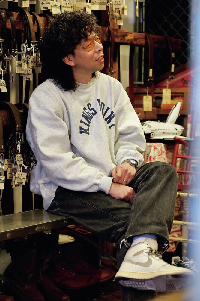 「硬化しているソールは滑るので年齢的にも危なくて履いてられませんからね。思い切ってリペアに出すことにしたんです。もちろんソールは新品ですがヴィンテージと同じく少し黄ばみを入れてオリジナル感を出しています。しっかりとリペアしてあって、決して安くはありませんが、オリジナルならではのアッパーのフォルムは復刻モデルでも完璧には再現できなかったですからね。やっぱりオリジナルが一番カッコ良い。色も昔はブラック×ブルーやレッド×ブルーなど派手な色が良かったですけど、最近は当時、地味な存在だったナチュラルカラーを履くことが多いです。最近のスタイルの中ではしっくりくるカラーリングかなと思っています」