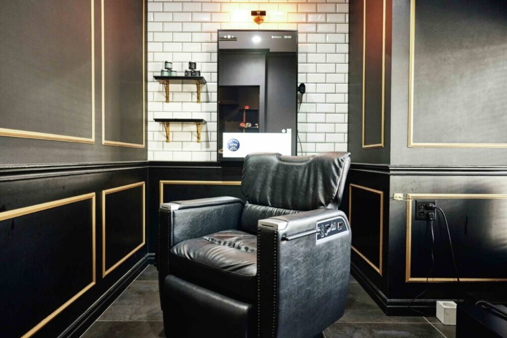 三島さんにとっての“アメリカ”は、固定のアイテムを指すのではなく、現地のバーバースタイル、そしてその特色を色濃く反映させた店舗全体にある。彼が運営する理髪店のひとつ『OTOKO DESIGN THE PRIVATE 和光市駅南口店』は、ロサンジェルスのクロムハーツからインスパイアを受けた黒を基調とした空間となっており、ゆったりとした設計の個室が3つ並んでいる。また、照明やタイル、バリカンはアメリカから持ち運んだものを使用するなどのこだわりが。ハイクラスなオトコのための上質な空間を体現しているのだ。そして現地でリサーチした最先端のヘアスタイルや技術を独自の解釈で再構築し、アップデートさせている。