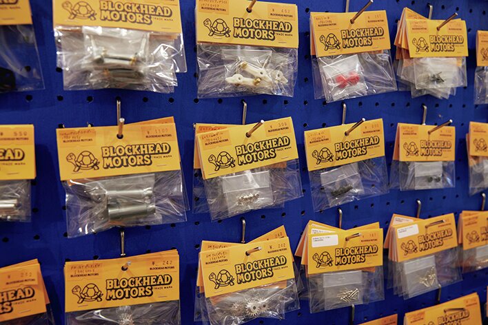 グラフィックデザインのスキルを活かして、タミヤのラジコンをブラッシュアップ。スケートやバイクのように、ストリートカルチャーと違和感なくマッシュアップできるような雰囲気をまとわせるのが『BLOCKHEAD MOTORS』の仕事だ。ココではジュン・ワタナベカスタムのヴィンテージラジコンとオリジナル商品をピックアップ!