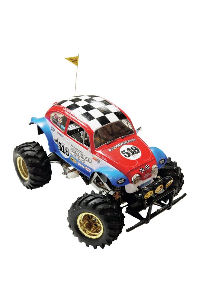1986年に発売された「モンスタービートル」をトリコロールカラーに。トップのチェッカーフラッグカラーも美しい。ちょっとしたウェザリング(汚し塗装)も効いているのよ