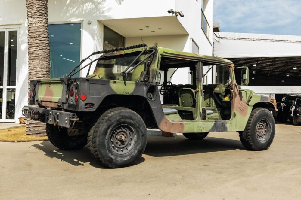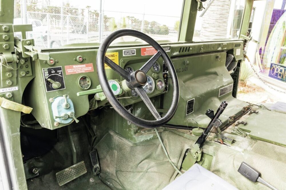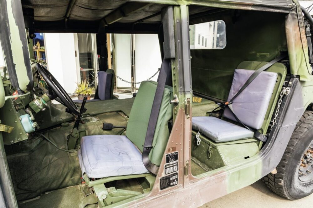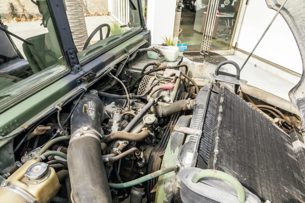 ハマーH1の輸入販売を数多く手がけているスカイオートが独自のコネクションで日本に輸入した個体で、日本では非常に珍しい一台と言っていいだろう。元来が軍用車ということもあって、不明点も多いが、車両に備わるプレートから判明していることを調べてみたところ、このクルマは’86年製造の一般的なHMMWVを、’09年に軍内の再資本化プログラムによってフレームオフしてオーバーホールした車両で、M-1097R1という大型兵器などの輸送車として生まれ変わった個体。さらにリパワープログラムによって6.5リッターのディーゼルエンジンに交換されていることも判明している。