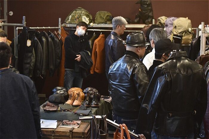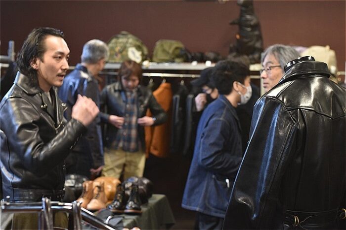 今回は新作アイテムのお披露目と裏地や袖丈変更等のカスタムオーダーが可能な内見会となり、当日にはY’2レザーの代表及び営業担当も駆けつけ、企画製造の詳細やサイズ感の提案等駆けつけたブランドファンにはたまらない内容となった。