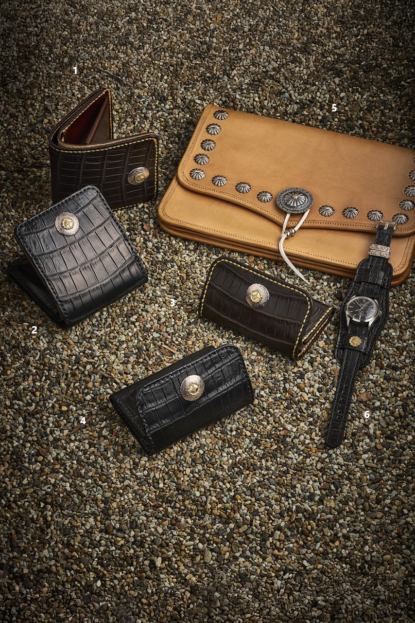 実はファーストアローズにはレザーアイテムの名品も数多い。最高級の牛革といわれるブッテーロレザーのほか、近年は馬革の中でも希少なコードバンやクロコダイルといった最高級の素材とシルバーやゴールドという夢のコラボレーション。その質感は所有欲を存分に満たしてくれる至高の一品というに相応しい。