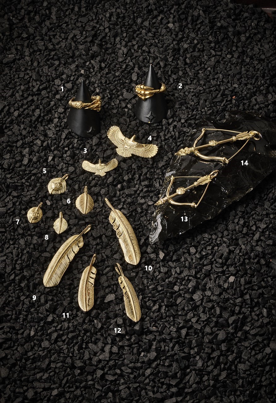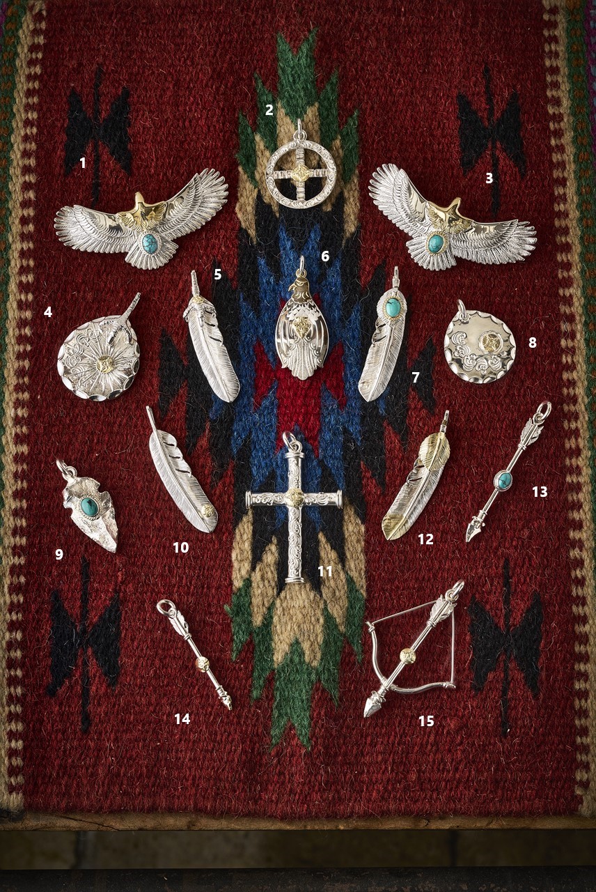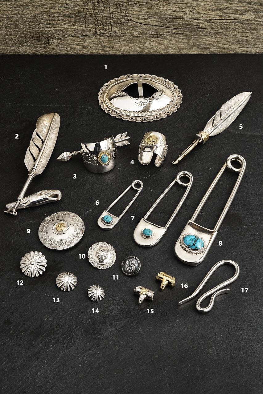 ネイティブアメリカンの伝統技法をルーツに持つことからフェザーやイーグル、アラベスクといったモチーフの作品は多数。しかし、ただの模倣ではなく、高い技術力を活かした精巧な作り込みや自由な発想から生まれる独自のデザインは、さながらアート作品。定番ながら他とは一線を画す完成度の高さを誇る。